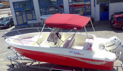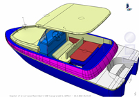 The interior of the vessel measures 2500 x 114 x 60. In the case of bad weather, the console (height: 1200) can sleep two people. Maximum power of the engine generator is 150km; fuel consumption is 13l per hour (32 Nm).